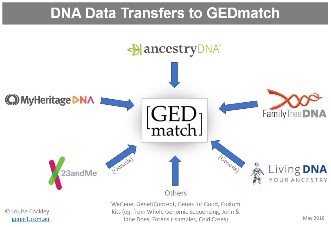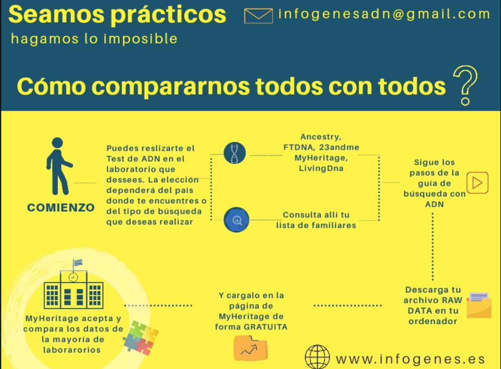 Desde INFOGENES, recomendamos el traspaso a MyHeritage en todo caso. Pero no conviene descartar el traspaso a FamilyTreeDna o a Gedmatch, sobre todo si la etnicidad o posible lugar de origen puede indicar una procedencia fuera de España. Hay que señalar que FamilyTreeDna o Gedmatch (que es una base de datos pública y que recientemente ha sido aquirida por Verogen), en ocasiones han cedido datos genéticos al FBI para la investigación de crímenes y por orden judicial. INFOGENES solo informa de su existencia, pero prefiere mantenerse al margen de recomendar su uso, que queda a decisión de los usuarios.